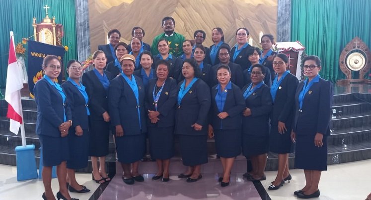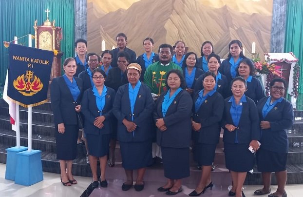 Pengurus WKRI Ranting Santu Falerianus foto bersama RD. Samuel Ohoilejaan, Pastor Paroki Santa Sisilia SP2.