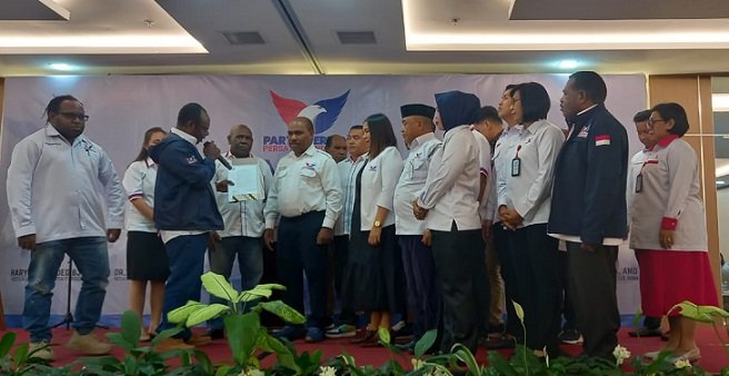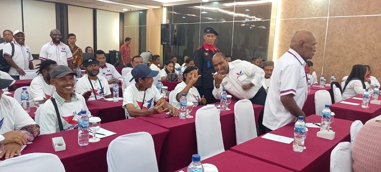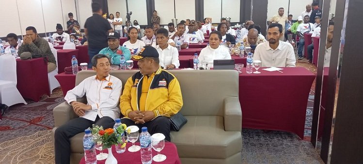Hadir juga fungsionaris Perindo,18 ketua Parpol di Mimika, sedangkan dari unsur Pemerintah Kabupaten Mimika dihadiri Kepala Badan Kesatuan Bangsa dan Politik, Yan Selamat Purba.