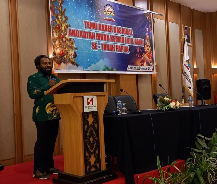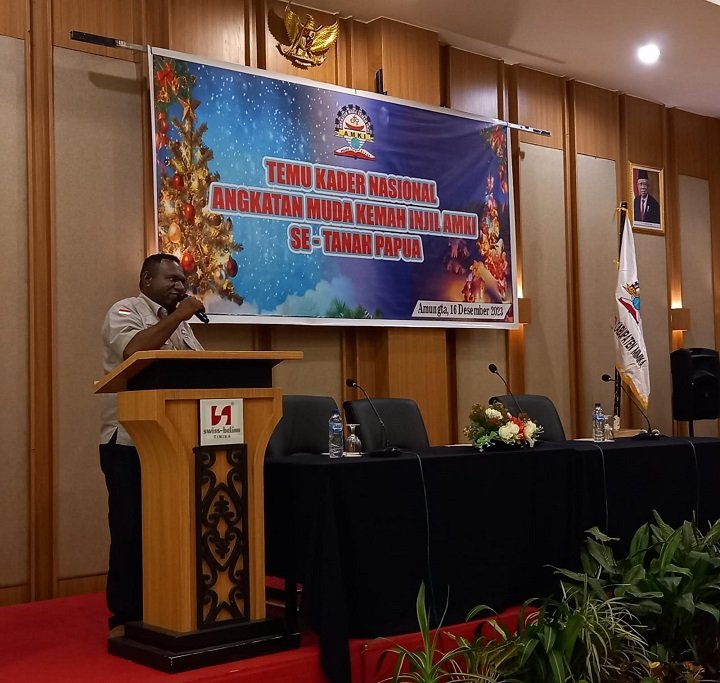 Ketua DPP AMKI Nason Utty, Ketua AMKI Puncak Ram Uamang, Ketua AMKI Papua Tengah Melianus Numang bersama kader AMKI mengikuti acara pembukaan temu kader Nasional AMKI Se-Papua.Pieter Edoway, Ketua AMKI Mimika sekaligus Ketua Panitia Natal Bersama AMKI 2023 bersama kader AMKI bertepuk tangan.Pdt. Dominikus Pigai, S. Th membacakan ayat Kitab Suci sebelum melantik panitia pembangunan.Pdt. Dominikus Pigai, S. Th melantik panitia pembangunan.Pdt. Dominikus Pigai, S. Th memegang tangan Pdt Obeth Yawame, Ketua Panitia setelah dilantik untuk berdiri kembali.Pieter Edoway, Ketua Panitia Natal Bersama Kingmi menyampaikan sambutan.Nason Utty, Ketua DPP AMKI menyampaikan sambutan.Melianus Numang, Ketua AMKI Papua Tengah menjelaskan perkembangan pembersihan lahan pembangunan kantor Perwakilan Sinode Kingmi di Timika.Panitia, para pendeta dan pengurus AMKI Papua foto bersama kader AMKI setelah pelantikan.