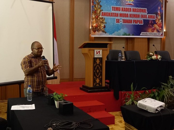 Acara pelantikan bersamaan dengan acara temu kader Angkatan Muda Kemah Injil Nasional Se-Tanah Papua berlangsung di salah satu hotel di Timika.