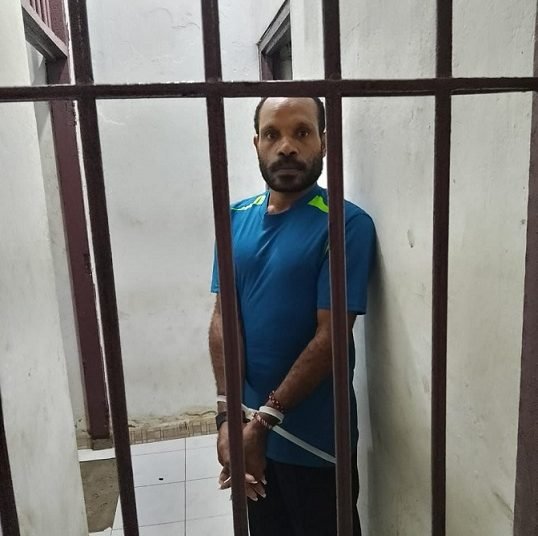 Altau dengan tangan diborgol diamankan dalam ruang tahanan Kejaksaan Negeri Jayawijaya, Senin 8 Januari 2024. (Foto : Ist./Koranpapua.id)