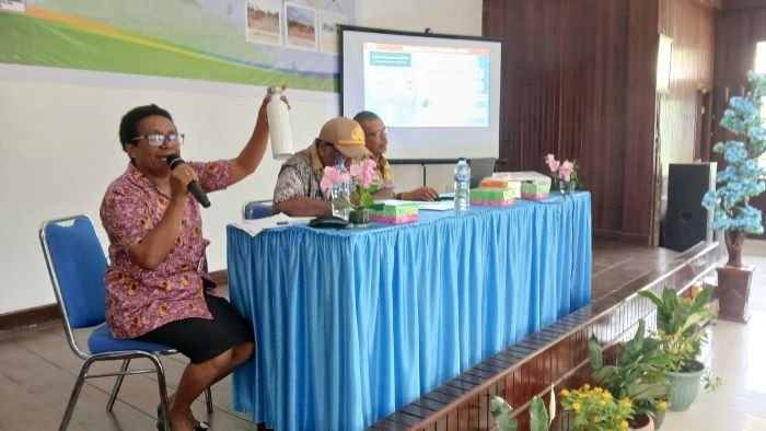 DINAS Lingkungan Hidup (DLH) Kabupaten Mimika, Provinsi Papua Tengah melaksanakan sosialisasi penanganan dan pengelolaan sampah. Kegiatan yang berlangsung di Gedung Bobaigo Istana Keuskupan Timika, Kamis 13 Juni 2024 dibuka Marten Mappi Malissa, Staf Ahli Bidang Kemasyarakatan dan SDM Setda Mimika. Dihadiri Frans Kambu, Kadis DLH dan para Kabid dan Kasie. Sosialisasi ini melibatkan Pemerintah Distrik Mimika Baru (Pemdis Miru), para lurah, kepala kampung, lembaga sekolah dan pelaku usaha. Berikut rangkaian kegiatan sosialisasi yang diabadikan jurnalis koranpapua.id, Anthonius Juma. (**)