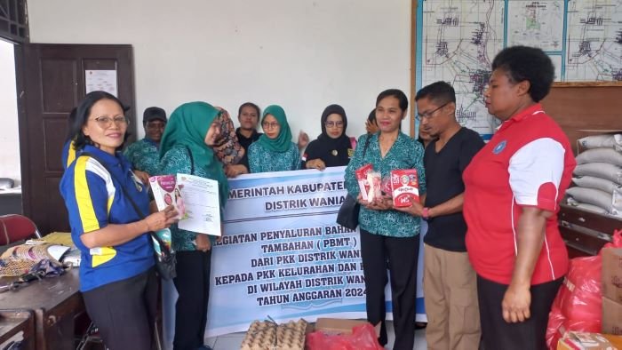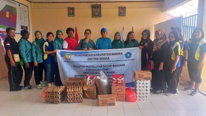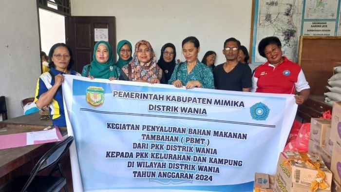 PEMERINTAH Distrik (Pemdis) Wania, Kabupaten Mimika, Provinsi Papua Tengah menyalurkan bantuan makanan untuk 19 Posyandu yang tersebar di tiga kelurahan dan empat kampung. Langkah ini sebagai upaya Pemdis Wania dalam mendukung peningkatan kesehatan gizi bagi bayi dan Ibu Hamil (Bumil) serta pencegahan stunting. Matius Sedan, Kepala Distrik Wania turun langsung menyerahkan bantuan, didampingi staf distrik dan ibu-ibu PKK Distrik Wania, Jumat 14 Juni 2024.