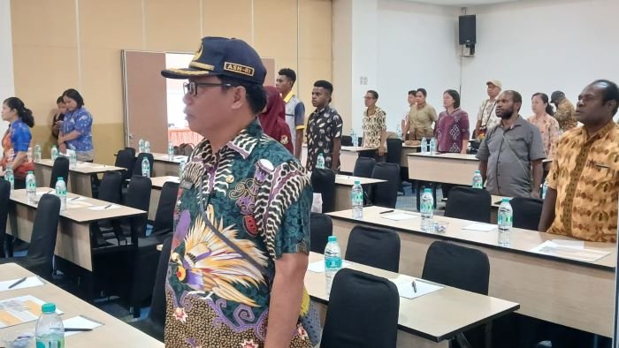 Kegiatan berlangsung di salah satu hotel di Timika dibuka Yakobus Karet, Staf Ahli Bidang Pemerintahan Politik dan Hukum Setda Mimika.