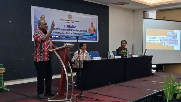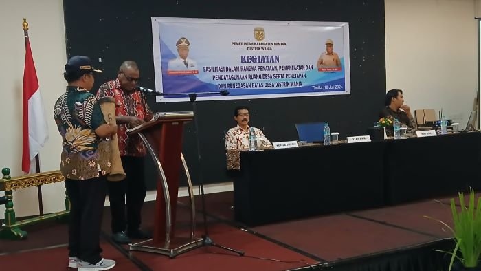 PEMERINTAH Distrik (Pemdis) Wania, Kabupaten Mimika, Provinsi Papua Tengah melaksanakan kegiatan Fasilitasi Penataan, Pemanfaatan Pendayagunaan Ruang Desa dan Penetapan serta Penegasan Batas Desa (kampung-Red), Kamis 18 Juli 2024.