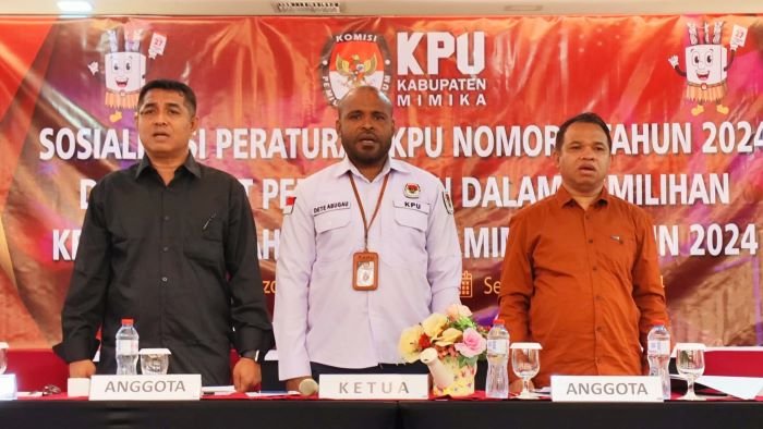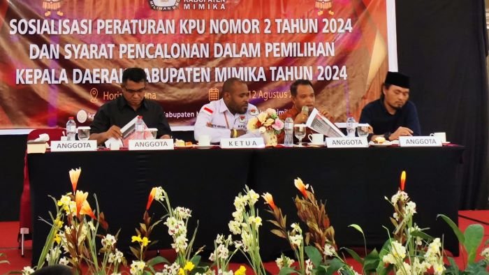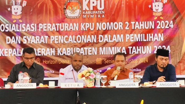 KOMISI Pemilihan Umum (KPU) Kabupaten Mimika melakukan sosialisasi Peraturan Komisi Pemilihan Umum (PKPU) Nomor 2 Tahun 2024, Senin 12 Agustus 2024.