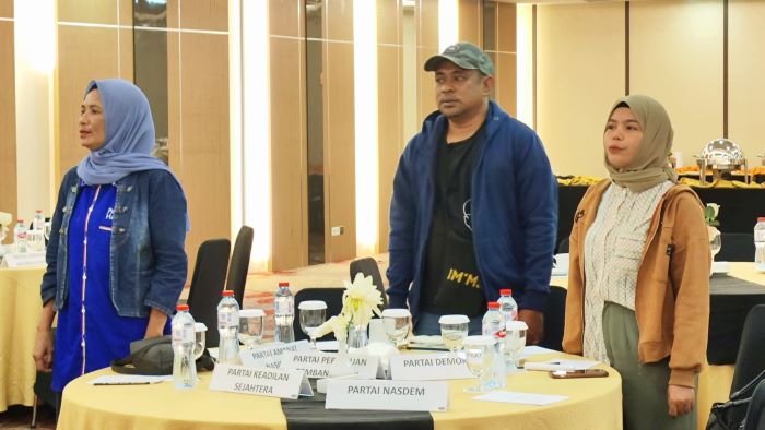 Tiga Komisiner KPU Mimika, Dete Abugau (Ketua), Fransiskus Xaverius Ama Bebe Bahy (Divisi Teknis), Hironimus Kia Ruma (Divisi Hukum) berdiri saat menyanyikan Indonesia Raya.Foto bersama dengan memperagakan salam KPU melayani.Peserta sosialisasi PKPU i saat menyanyikan lagu Indonesia Raya.Salah satu perwakilan partai politik sedang mengajukan pertanyaan.Empat Komisiner KPU Mimika, Dete Abugau (Ketua), Fransiskus Xaverius Ama Bebe Bahy (Divisi Teknis), Hironimus Kia Ruma (Divisi Hukum), dan Budiono (Divisi Data). Foto bersama perwakilan partai politik.Empat Komisiner KPU Mimika, Dete Abugau (Ketua), Fransiskus Xaverius Ama Bebe Bahy (Divisi Teknis), Hironimus Kia Ruma (Divisi Hukum), dan Budiono (Divisi Data).Para peserta saat mengikuti sosialisasi PKPU Nomor 2 Tahun 2024Perwakilan Partai Perindo dan, Partai Nasdem dan PKB saat menyanyikan lagu Indonesia Raya.Hironimus Kia Ruma (Divisi Hukum) saat memaparkan materi didampingi Dete Abugau (Ketua), Fransiskus Xaverius Ama Bebe Bahy (Divisi Teknis), dan Budiono (Divisi Data).Suasana Sosialisasi PKPU Nomor 2 Tahun 2024 yang dilakukan KPU Mimika.