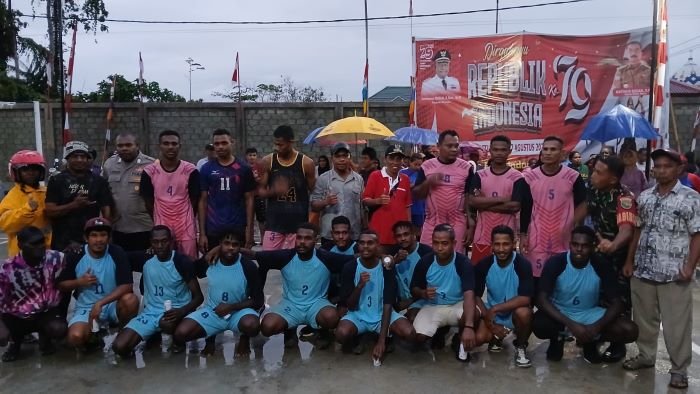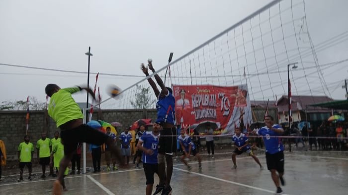 DALAM rangka memperingati HUT RI ke-79 tahun 2024, Pemerintah Distrik Wania, Kabupaten Mimika, Papua Tengah menggelar pertandingan voli antar kampung dan kelurahan yang ada di wilayah itu.