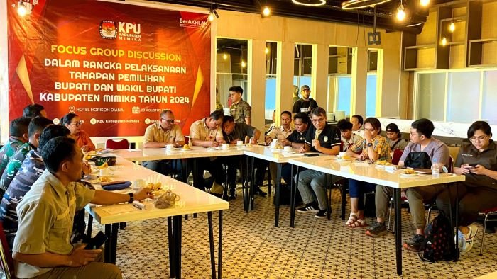 Mendekati hari pendaftaran ini, KPU Mimika menggelar Focus Group Discussion (FGD) yang membahas terkait tahapan pemilihan bupati dan wakil bupati di Kabupaten Mimika tahun 2024.
