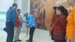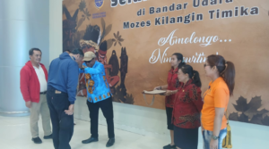 Yakobus Kareth, Staf Ahli Bupati Mimika, Yohana Paliling, Kepala Bappeda, Kepala Dinas Perhungan Mimika, Yoseph Manggasa Sekretaris Bappeda dan Theresia Maturbongs, Kasubag Ekonomi Bappeda Mimika foto bersama Tri Widodo Wahyu Utomo dan Yusharto Huntoyungo.Valentinus S. Sumito, Pj Bupati Mimika membacakan sambutan.Pj Bupati Mimika Valentinus S. Sumito didampingi dua narasumber Kemendagri dan Yohana Paliling Kepala Bappeda Mimika menabuh tifa membuka kegiatan.Pj Bupati Mimika Valentinus S. Sumito didampingi narasumber Kemendagri didampingi Yohana Paliling Kepala Bappeda Mimika foto bersama dua perwakilan pamong inovasi setelah pengalungan tanda peserta.Pj Bupati Mimika Valentinus S. Sumito didampingi Yohana Paliling Kepala Bappeda Mimika foto bersama narasumber Kemendagri setelah menyerahkan cinderamata.Tri Widodo Wahyu Utomo, Kepala Deputi Bidang Kajian Kebijakan dan Inovasi Administrasi Negara Lembaga Administrasi Negara (LAN) memberikan arahan.Yakobus Kareth, Staf Ahli Bupati Mimika menyematkan tas noken di leher Tri Widodo Wahyu Utomo, Kepala Deputi Bidang Kajian Kebijakan dan Inovasi Administrasi Negara Lembaga Administrasi Negara (LAN).Yakobus Kareth, Staf Ahli Bupati Mimika menyalami Yusharto Huntoyungo, Kepala Badan Strategi Kebijakan Dalam Negeri (BSKDN) Kementerian Dalam Negeri (Kemendagri) di ruang kedatangan Bandara Mozes Kilangin disaksikan Yohana Paliling, Kepala Bappeda Mimika.Yohana Paliling, Kepala Bappeda Mimika, Sekretaris Bakesbangpol Mimika Alfasiah bersama pamong inovasi daerah Mimika mendengarkan arahan Tri Widodo.Peter Isman, AP. Analis Kebijakan Publik Badan Strategis Kementerian Dalam Negeri RI (BSKDN) memberikan materi inovasi daerah.Pj. Bupati Mimika Valentinus S. Sumito didampingi Yohana Paliling, Kepala Bappeda Mimika, RP Yohanes Haryoto, SCJ foto bersama narasumber Kemendagri serta pimpinan OPD, perwakilan TNI-Polri dan para pamong inovasi daerah.