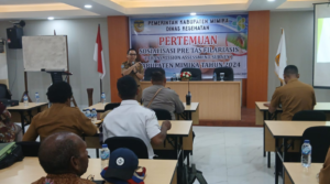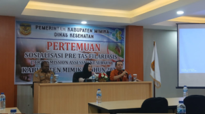 Obeth Tekege, Kabid P2P Dinkes Mimika memberikan sambutan sekaligus membuka sosialisasi Pre TAS Filariasis.