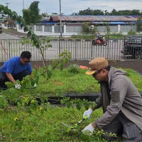 Melihat ini, Yonathan Demme Tangdilintin, Pj Bupati Mimika langsung turun tangan membersihkan areal bundaran tempat berdirinya Patung Perunggu Kamoro yang berada di Jalan Cenderawasih, Sabtu 8 Februari 2025.