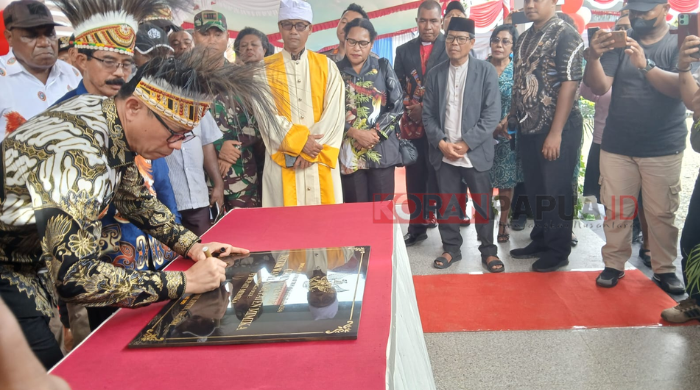 Menyusul penandatanganan prasasti dan pengguntingan pita oleh Yonathan Demme Tangdilintin, Pj Bupati Mimika.