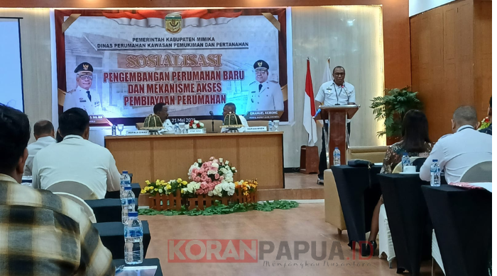 DINAS Perumahan Kawasan Pemukiman dan Pertanahan (DPKPP) Kabupaten Mimika melakukan sosialisasi Pengembangan Perumahan Baru dan Mekanisme Pembiayaan Perumahan  Kabupaten Mimika, Rabu 21 Mei 2025.