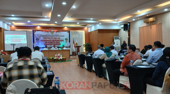 Sosialisasi yang berlangsung di salah satu hotel di Timika, dihadiri Willem Naa, Plt Kepala Dinas Perumahan Kawasan Pemukiman dan Pertanahan (DPKPP) dan Suharso, Sekretaris  DPKPP.
