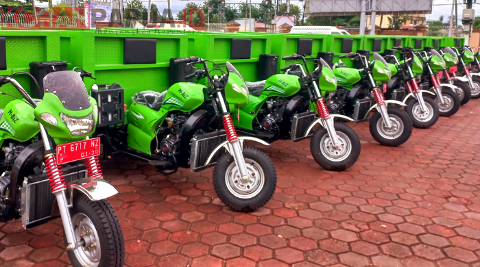 Nampak motor sampah roda tiga, bantuan dari Dinas Lingkungan Hidup kepada 13 kelurahan di wilayah perkotaan.
