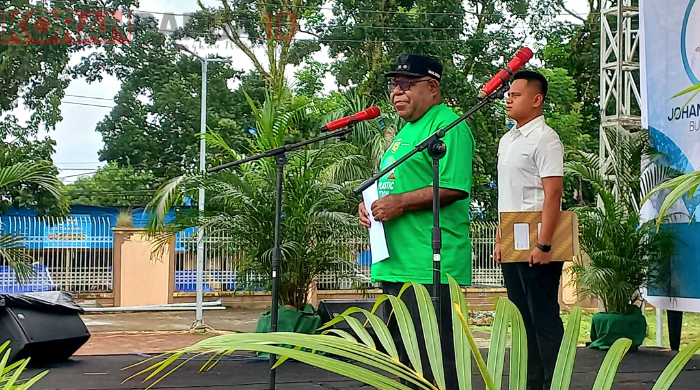 Emanuel Kemong, Wakil Bupati Mimika menyampaikan sambutan.