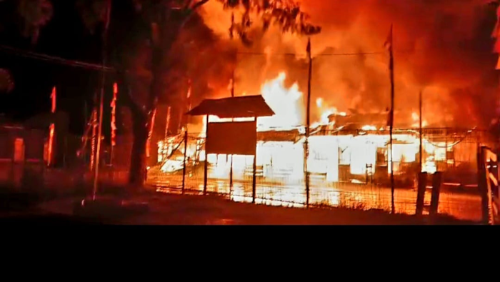 Nampak kebakaran yang melanda kawasan Pelabuhan Poumako, Distrik Mimika Timur, Kabupaten Mimika Senin 4 Agustus 2025 dini hari. (foto:ist/koranpapua.id)
