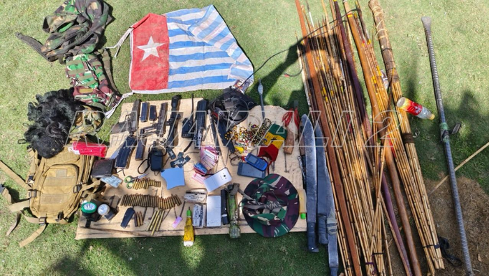 Termasuk satu bendera Bintang Kejora, tiga unit telepon genggam, power bank, magasin senjata, serta perlengkapan tempur lainnya.