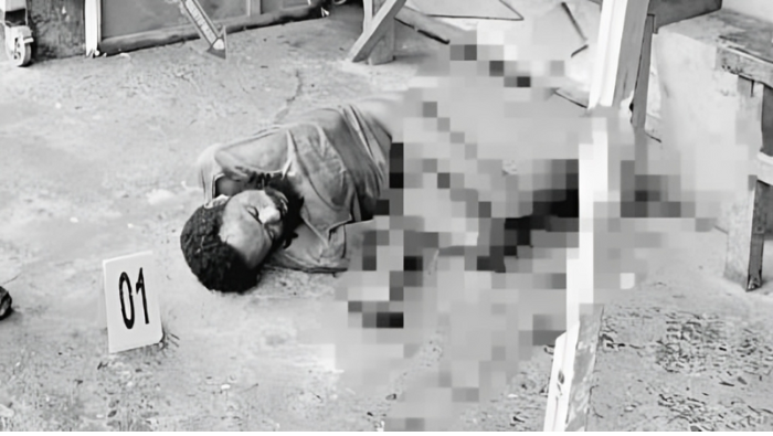 Sosok mayat pria tanpa identitas yang ditemukan di pinggir jalan ki hajar dewantara Timika. (Foto:ist/koranpapua.id)