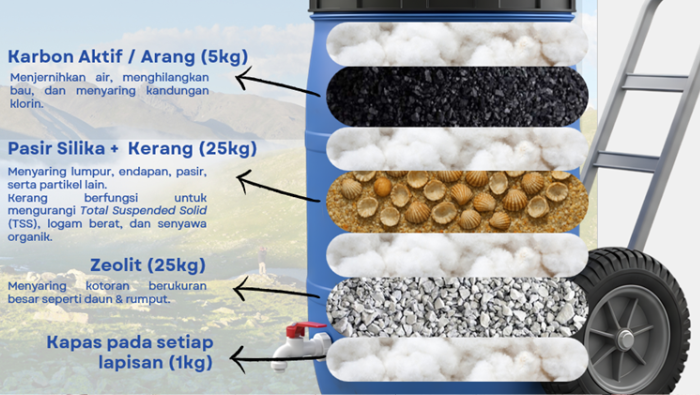 Inovasi utama dari program ini adalah sistem filtrasi yang dirancang menggunakan drum barel berkapasitas 110 liter.