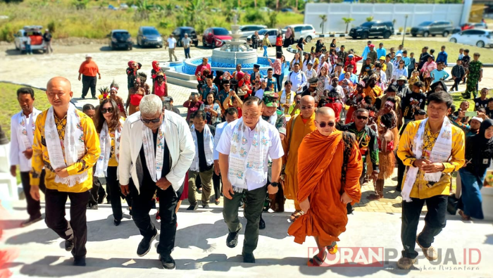 Rombongan Bupati saat tiba di Vihara Jalan Irigasi Timika. (foto:Hayun Nuhuyanan/koranpapua.id)