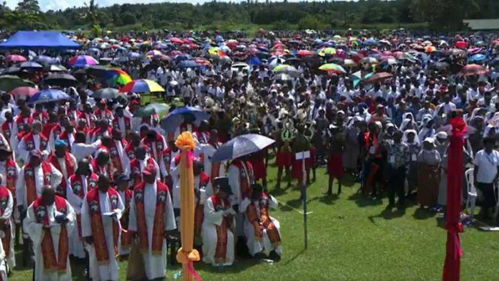 Para imam, biarawan/biarawati, dan ribuan umat beriman berkumpul untuk Misa syukur di Papua Nugini pada 14 Desember, yang diselenggarakan untuk merayakan kanonisasi Santo Petrus To Rot. (foto:ist/koranpapua.id)
