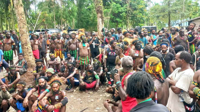 Salah satu kelompok yang berkonflik di Kwamki Narama berkumpul saat upaya perdamaian pada November 2025 lalu.