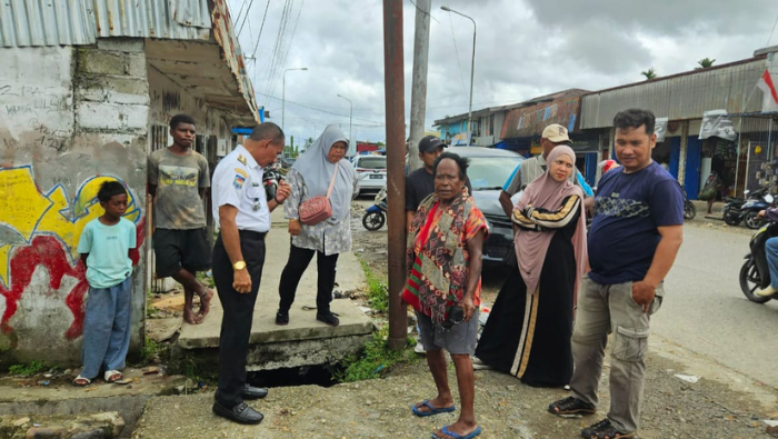 Bersama tim kebersihan, Bank Sampah, serta pegawai distrik, Kepala Distrik Mimika Baru Joel Luhukay, turun langsung ke lapangan untuk melakukan survei sekaligus pembersihan saluran air yang kerap tersumbat sampah.