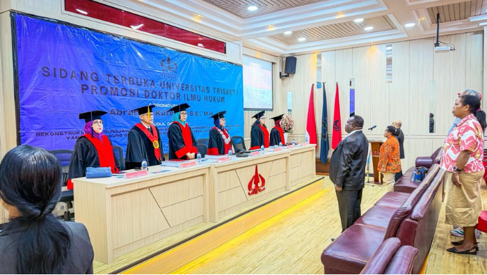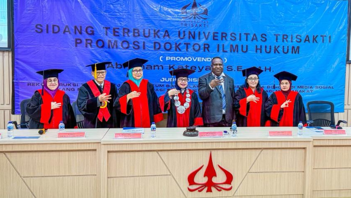 Salah satu putra terbaik Mimika, asal Suku Kamoro berhasil meraih gelar Doktor (Dr) Ilmu Hukum, setelah dinyatakan lulus Ujian Karya Ilmiah (Disertasi) Strata Tiga (S3) di Universitas Trisakti Jakarta, Rabu 21 Januari 2026 pukul 13:00 WIB.