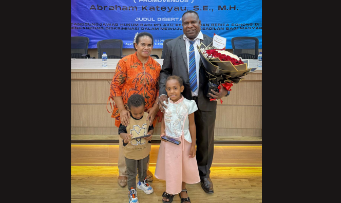 Ketika dihubungi Koranpapua.id melalui sambungan telepon malam ini dari Jakarta, Abraham mengucapkan puji dan syukur kepada Tuhan, karena berkat pertolongan dan bimbingan-Nya akhirnya boleh menyelesaikan studi Program S3 dengan baik.