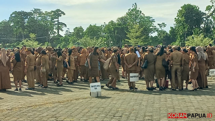 ASN Pemkab Mimika usai mengikuti apel gabungan di halaman kantor bupati di SP3, Senin 26 Januari 2026.