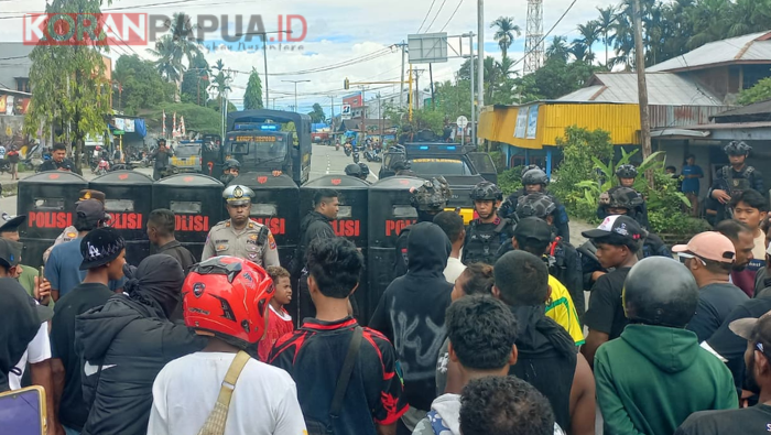 Personel Polsek Mimika Baru bersama anggota Polres Mimika dikerahkan untuk mengamankan situasi dan menenangkan massa.