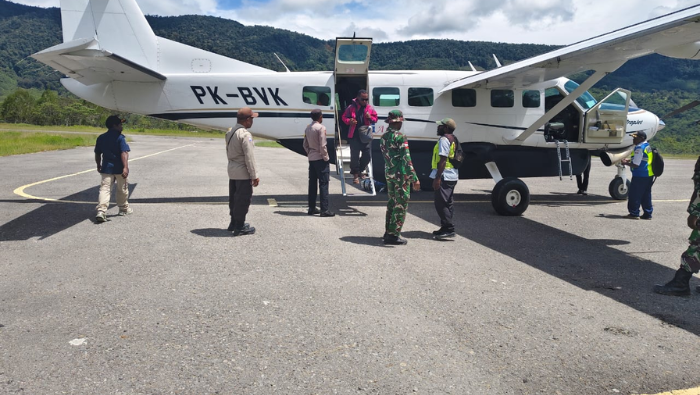 Pengamanan dipimpin Wakapolsek Bokondini, Aiptu Jemsi R. Solissa, bersama anggota Polsek serta Babinsa, bertepatan dengan kedatangan pesawat Susi Air dengan nomor registrasi PK-BVK di Bandara Bokondini.