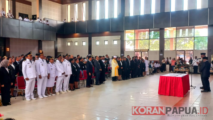 Prosesi pelantikan dipimpin langsung oleh Bupati Mimika Johannes Rettob, didampingi Wakil Bupati Emanuel Kemong dan Pj Sekda Mimika Abraham Kateyau.