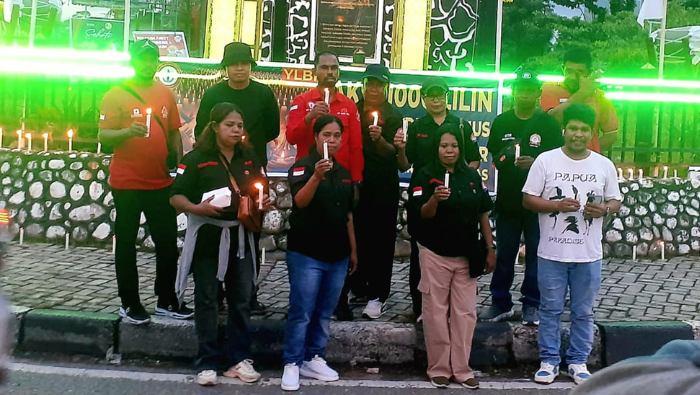 Aksi 1000 lilin di Timika yang digelar YLBH Papua Tengah sebagai bentuk solidaritas atas kasus penyiraman air keras terhadap aktivis KontraS, Andrie Yunus. (foto: Hayun Nuhuyanan/koranpapua.id)