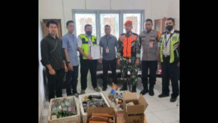 Korpasgat dan Avsec Serahkan Ratusan Botol Miras dan Petasan yang Disita di Bandara Sentani ke Polisi