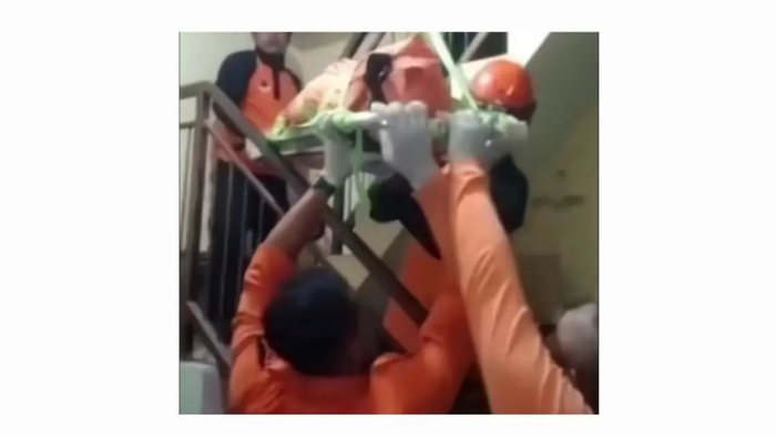 “Jenazah ASR dievakuasi petugas BPBD Surabaya dan Dinas Sosial menggunakan ambulans menuju ke kamar mayat Rumah Sakit Bhayangkara Surabaya”.