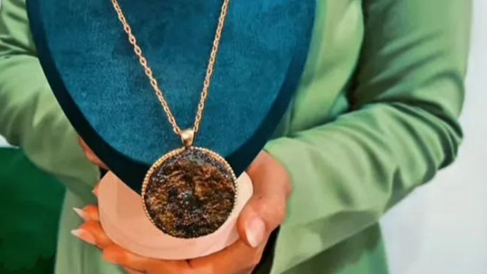 Batu pyrite mentah yang memiliki kilau keemasan alami itu dirangkai dan dipadukan dengan logam campuran menjadi bros, kalung, hingga gelang.