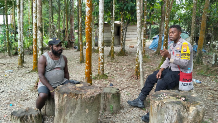 Nixon yang sehari-hari bertugas sebagai Bhabinkamtibmas ditengah kesibukakannya berkesempatan mengunjungi warga di Kampung Hangaitji, Distrik Mimika Baru, Kabupaten Mimika.