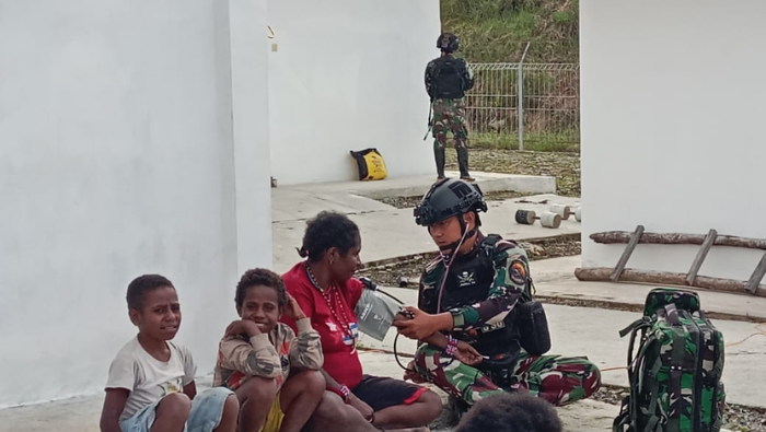 Pada kesempatan itu para prajurit juga memberikan sosialisasi mengenai aturan bandara Tigiles serta layanan pengobatan gratis oleh tim kesehatan.